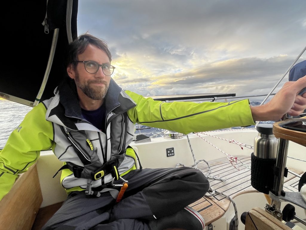 Nach dieser Aktion mussten wir beide erst mal Luft holen… Wir waren jetzt mit der verkleinerten Genua gut aufgestellt, aber Christian wurde langsam immer blasser. Mein Skipper war seekrank!