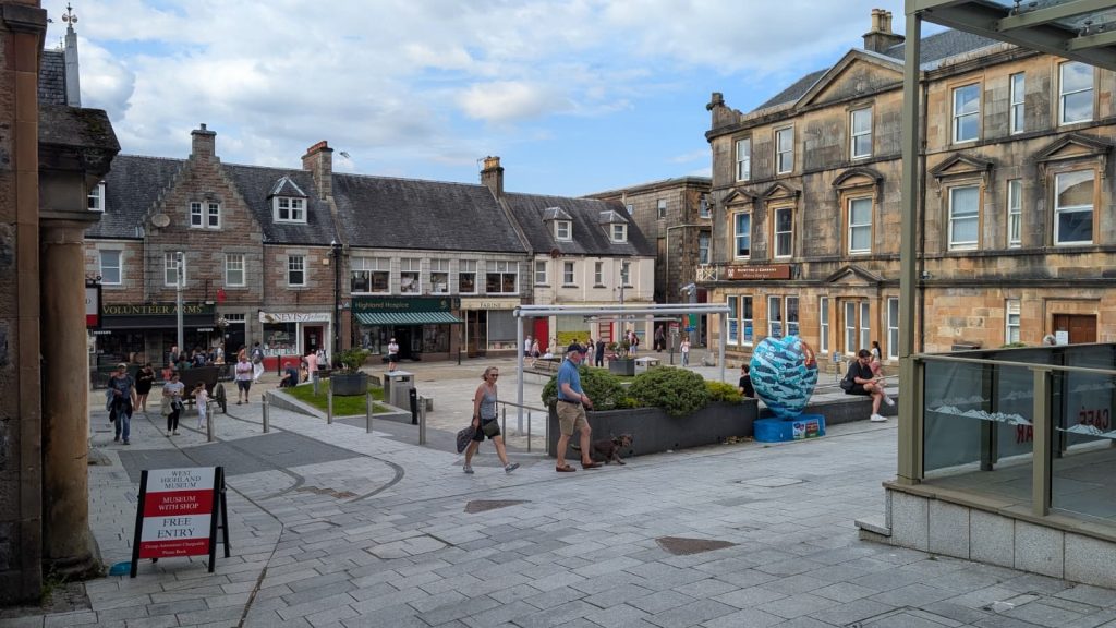 Heute Morgen ging es dann zur Abwechslung mit der frühen Gezeit weiter (immer noch bei Sonne satt und ohne Wind), nun liegen wir in Fort William und haben auch schon eine kleine Erkundungstour gemacht. Fort William ist ganz nett, aber nichts im Vergleich zu Oban. Wir haben aber eine nette Taverne gefunden, in der es klassisches schottisches Essen gibt. Das war die Gelegenheit, einmal Haggis zu probieren. Im Prinzip sind das Schafsinnereien, gekocht mit Haferflocken und ein paar anderen Zutaten in einem Schafsmagen. Umgestülptes Schaf also. Hört sich komisch an, schmeckt aber ganz lecker, ein Bisschen wie Leberpastete. Serviert mit Kartoffelpüree und einer Art Rübenkompott.