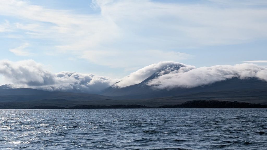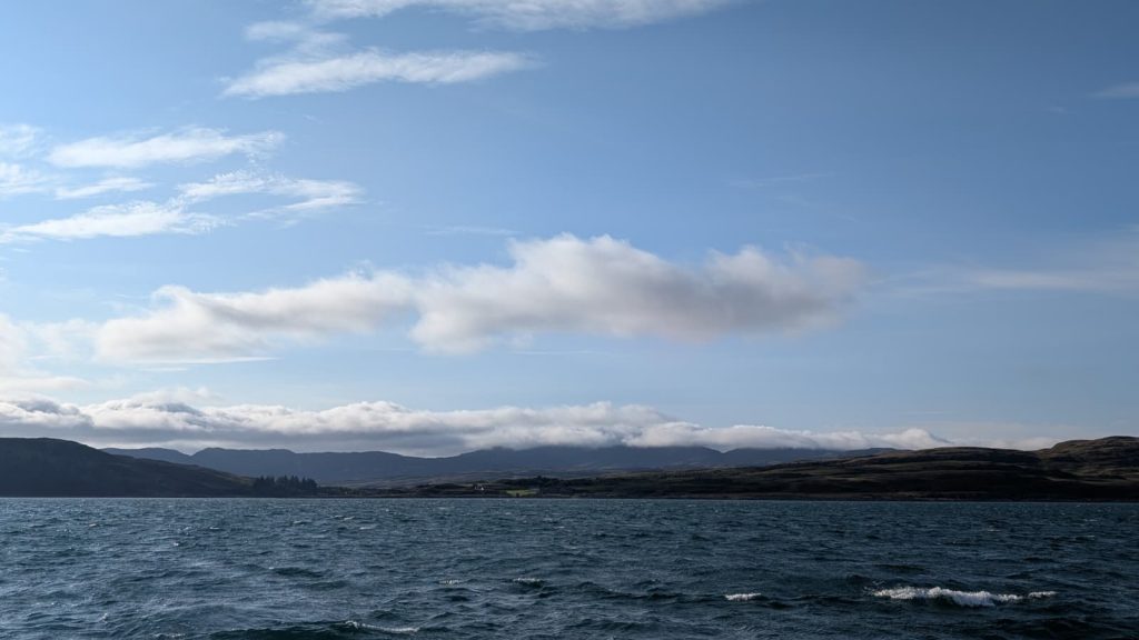 Aber Show must go on, so warfen wir am Freitag am frühen Nachmittag die Leinen los und segelten nach Norden, hinein in den Sound of Jura. Unser Ziel war die Lussa Bay, eine Ankerbucht an der Nordostseite der Insel Jura. Wir hatten im Windschatten der Insel deutlich mehr Wind als erwartet. Man weiß hier nie genau, woher der Wind kommt und wie stark er sein wird. Er strömt zwischen den Inseln lang, kann aber auch über die Inseln durch ein Tal beschleunigen usw. So fährt man von der totalen Flaute plötzlich in einen Starkwindbereich, um kurz darauf wieder in einer Flaute zu stecken. Ein bisschen wie Baggersee-Segeln. Und dazu kommen noch mitunter sportliche Gezeitenströme. Sicher kein einfaches Revier.