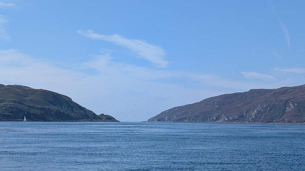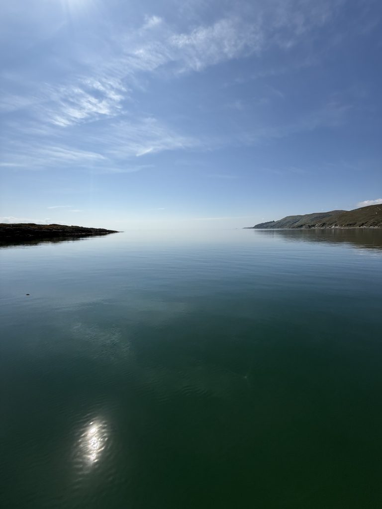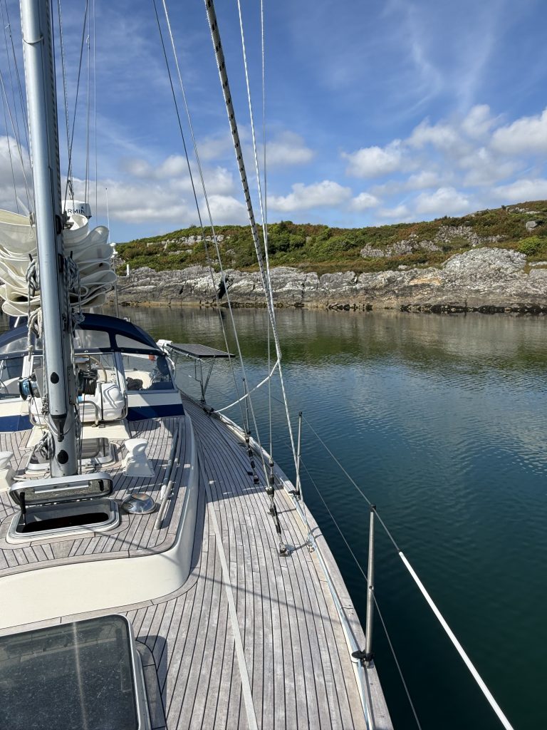 Ganz begeistert von diesem Ankerplatz, der bei all den Orten, die wir bisher besucht hatten, ganz weit oben steht, lichteten wir wieder einmal nachmittags den Anker, um weiter nach Norden zu fahren. Schottland verwöhnte uns mit allerbestem Sommerwetter. Sonne satt, im Schatten aber dennoch angenehm kühle Temperaturen, aber auch totale Windstille.